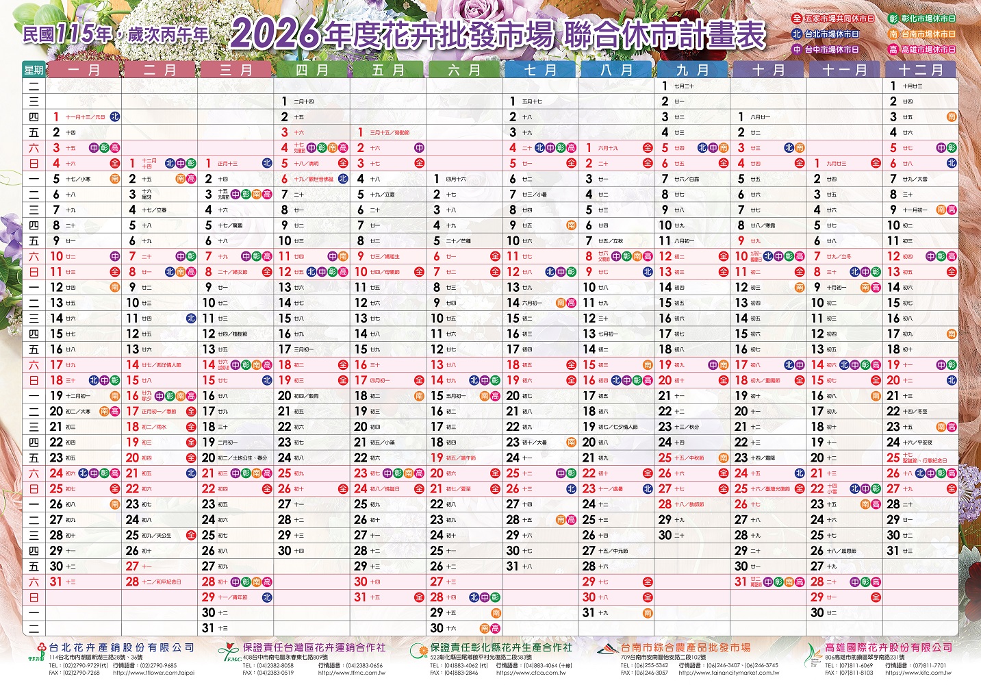 | 2025/12/15 | 115年五家市場聯合休市表 |